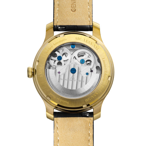 A limited edition dual time zone machine with a glimpse of the mechanics viewable through the dial. Individually numbered to 500 pieces.